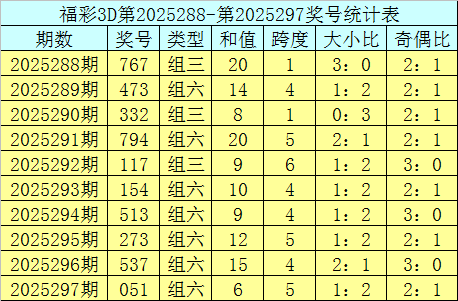 上期回顾:福利彩票3D第2025297期奖号为051。
