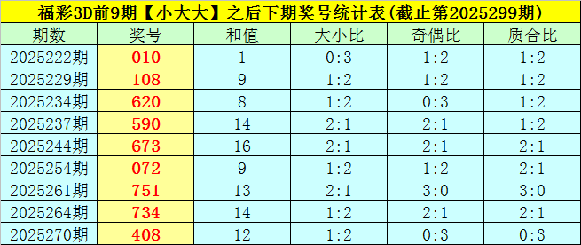一、上期回顾:福彩3D第2025299期奖号为:385,奖号类型开出组六,大小比为2:1,奇偶比为2:1,和值为16,跨度为5,012路比为1:0:2。