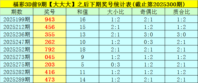 一、上期回顾:福彩3D第2025300期奖号为:867,奖号类型开出组六,大小比为3:0,奇偶比为1:2,和值为21,跨度为2,012路比为1:1:1。