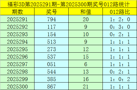 上期回顾:福彩3D第2025300期开出奖号:867。奖号为组六形态,与试机号没有同,奇偶比为1:2,大小比为3:0,012路比为1:1:1,和值为21,跨度为2。