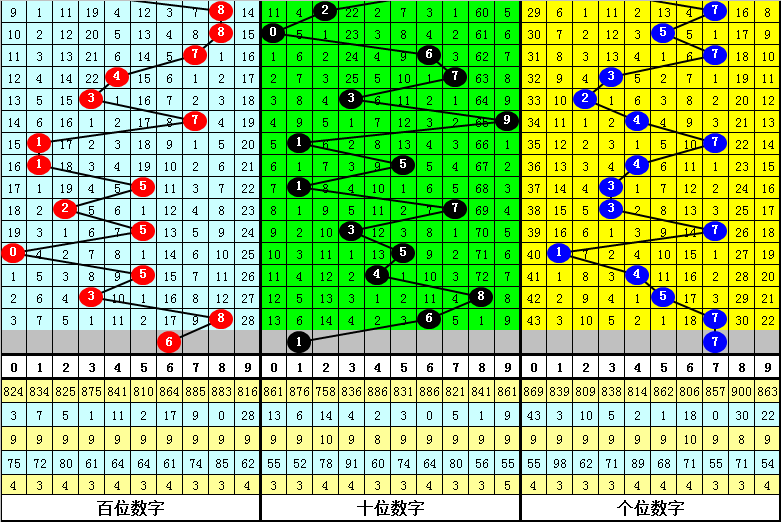 百位分析:该位最近10期开出了2个0路号码、3个1路号码、5个2路号码,2路号码热出,0路号码走冷。本期排除2路号码,参考号码:6。