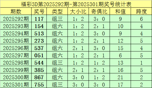 其中大小比3:0,奇偶比3:0,和值17,跨度2。