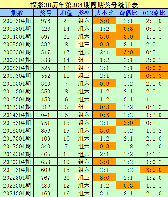 组选类型判断:在第304期历史同期开奖中,组六开出17次,组三开出6次,今年同期看好开出组六号码。