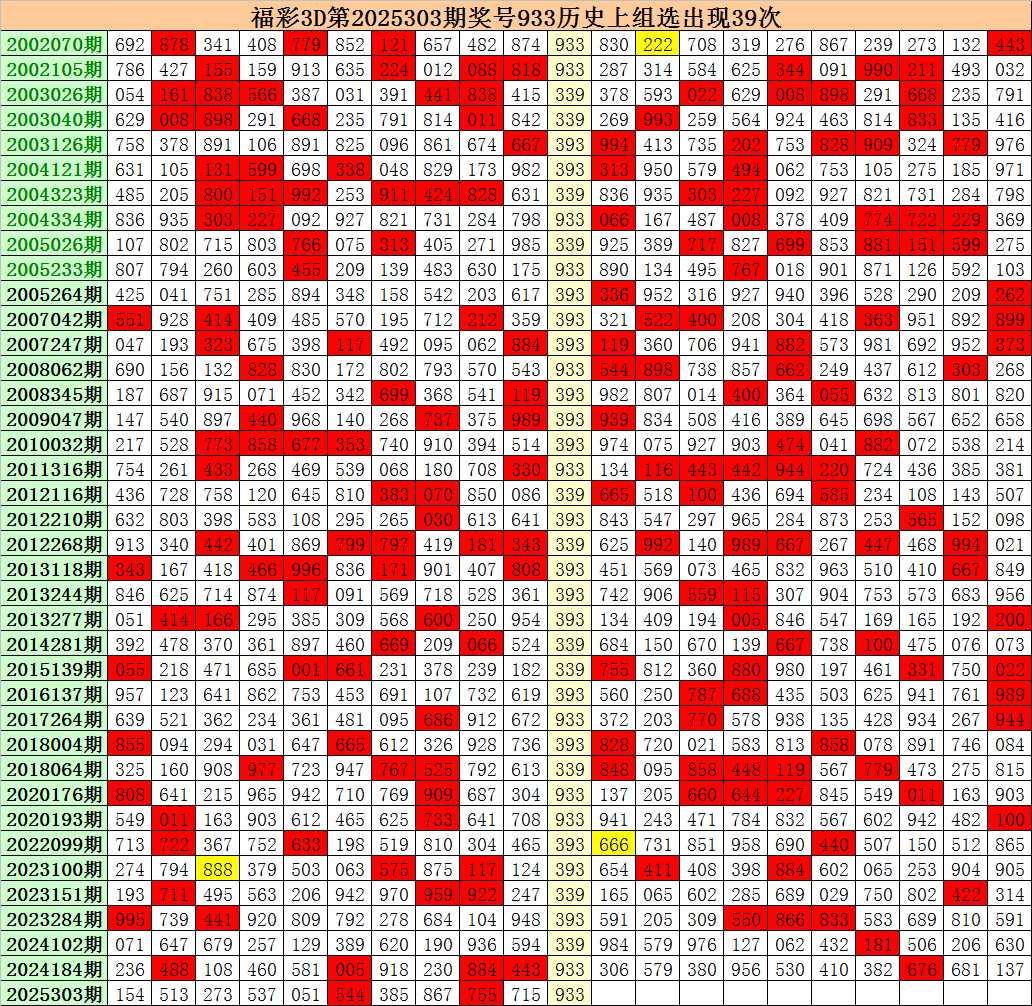 解密:首先,直选933开出之后,10期内开出豹子号0次,2003年-2025年在开出直选933之后,10期内组三累计出现27次,组三在未来第1-5期出现概率为80%,组三在未来5-10期出现的概率为90%。