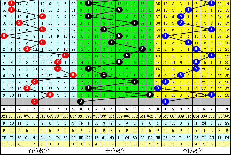 末位跨度分析:前3期末位奖号为1-0-7,最近两期末位奖号跨度为1、7,末位奖号跨度历史上连续两期开出1、7的现象共80次,其最近两次奖号为: