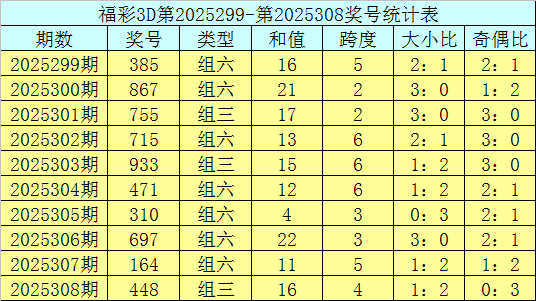 类型判断:上期奖号为448。号码4近10期出现4次,走冷,号码出现频次较低,上期各位号码走势较温,本期关注温码开出。