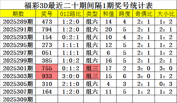 福彩3D第2025309期四叔推荐:
