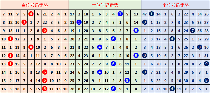 百位号码上期开出偶数号码6,近十期奇偶比4:6,整体来看偶数球出号次数较多,本期预测奇数号码热出,重点关注号码3