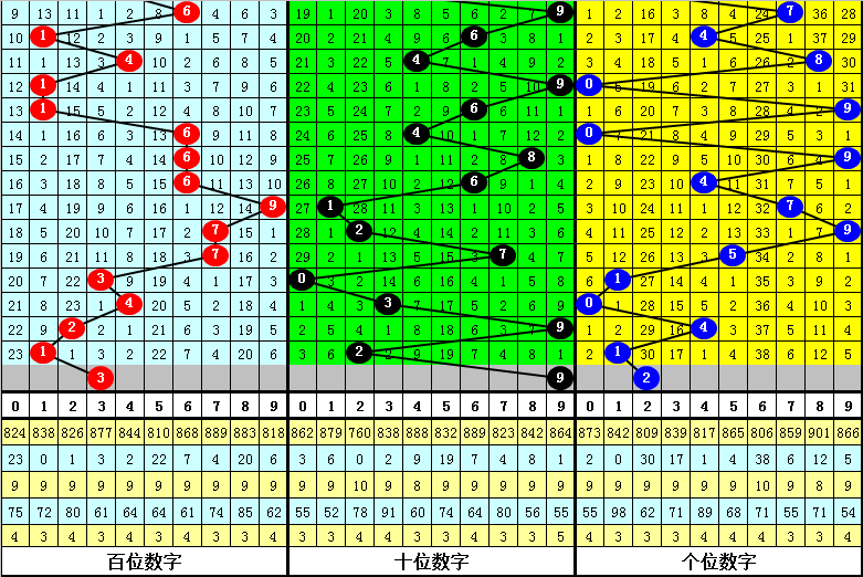 跨度分析:跨度近期分布在1-8区段,分布较广,本期看好跨度上升,参考跨度7。