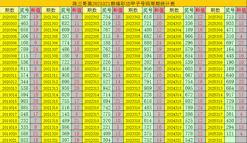 第2020年-第2024年的第309期奖号分别为:536、722、220、202、539,第2019年-2024年的第321期奖号分别为:853、397、304、752、542。其中: