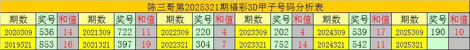 则,第2025321期奖号可以参考第2025309期奖号:190。