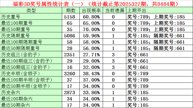 上期奖号:福利彩票3D第2025327期开出奖号789。