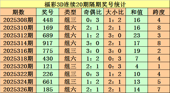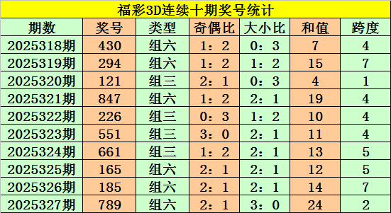 上期回顾:福彩3D第2025327期奖号:789。组六、大大大、奇偶奇。