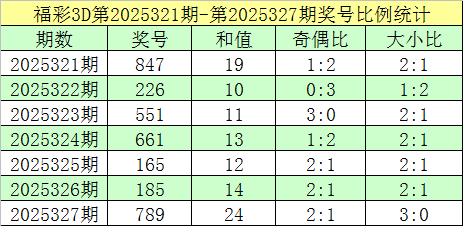 福彩3D第2025327期回顾:奖号为789,奖号奇偶比为2:1,大小比为3:0,和值为24,类型为组六。