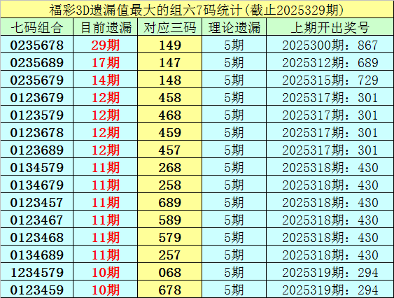 福彩3D七码遗漏组六分析(第2002001期-第2025329期)