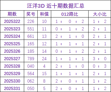 开奖回顾:福彩3D开奖号为050,和值为5,其中奖号012路比为2:0:1,大小比1:2。