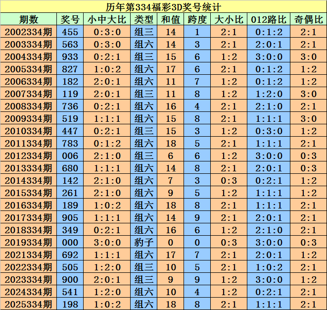 开奖回顾:福彩3D第2025334期奖号为:198。