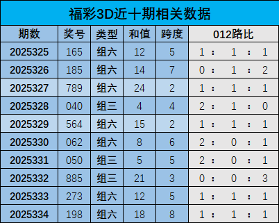 开奖回顾:福彩3D上期奖号为198,和值是18,跨度是8,其中奖号012路比为1:1:1。