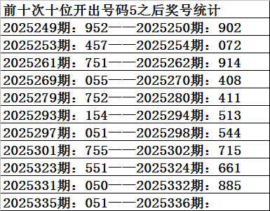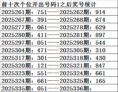 一、上期开奖:福利彩票3D第2025335期奖号为051。奇偶比为2:1,大小比为:1:2,奖号和值为6,奖号跨度为5。
