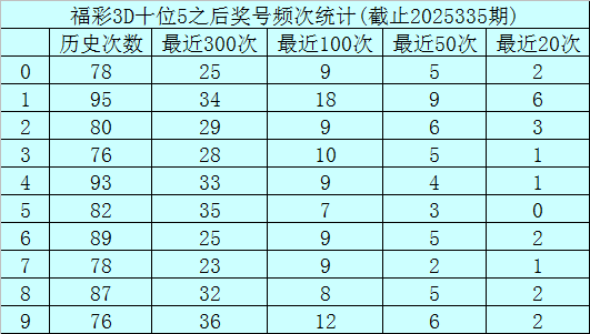 开奖回顾:福彩3D第2025335期奖号为051,奖号类型开出:组六、小大小、偶奇奇,和值为6。
