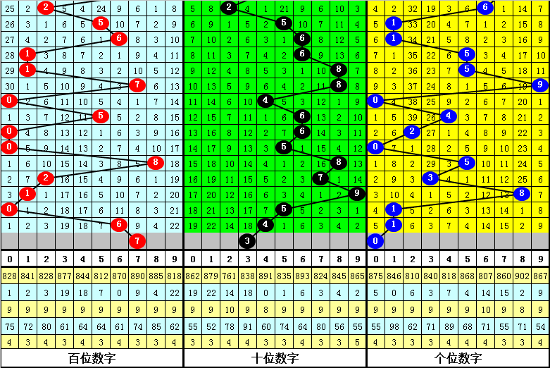 百位号码:第25332期-25336期奖号为:8-2-1-0-6,振幅为8点,分布较分散,本期预计百位走高,关注号码7。