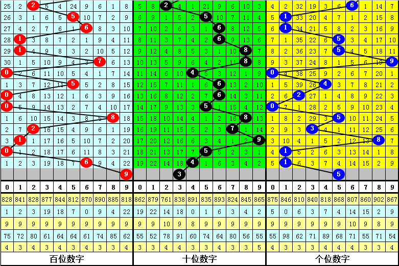 百位推荐:近10期出现5个0路号、2个1路号、3个2路号,0路号大热,1路号走势低迷。本期注意0路号,关注号码0、9。