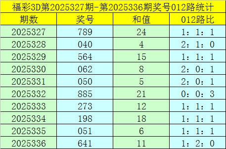 福彩3D第2025337期012路分析
