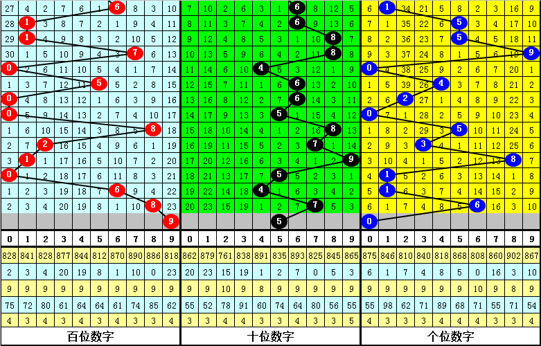 跨度分析:最近周四跨度出现范围在3-8区间,跨度比较集中,上周四跨度为5,跨度重复开出,本期看好跨度上升,参考跨度9。