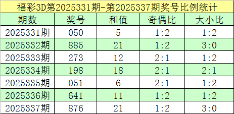 福彩3D第2025337期回顾:奖号为876,奖号奇偶比为1:2,大小比为3:0,和值为21,类型为组六。