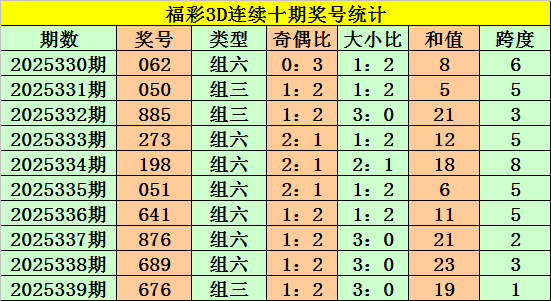 上期回顾:福彩3D第2025339期奖号:676。组三、大大大、偶奇偶。