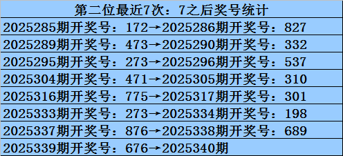 第二位冷码判断:上期奖号为7,遗漏值为1期,目前该位最冷号码为1,遗漏值为25期,本期不看好解冻。