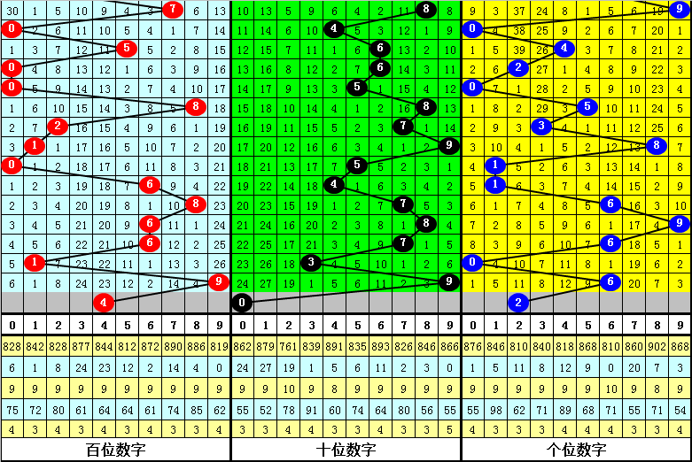 从以上统计可以看出,百个位两码合差5与3同时出现之后其下期两码合差表现最热的4个分别为:0124,本期百个位两码合差可以参考这四码中的数据。
