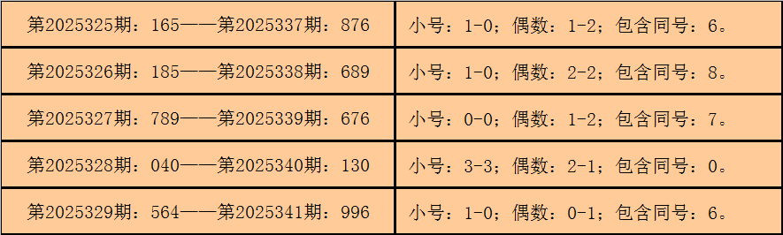 统计3D历史上已开出的奖号发现,在连续5期开奖号码中:3D在第2025325期-第2025329期分别开出奖号:165-185-789-040-564。