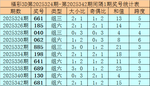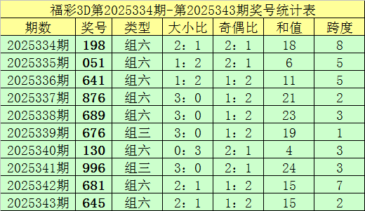 上期回顾:福彩3D第2025343期奖号:645。