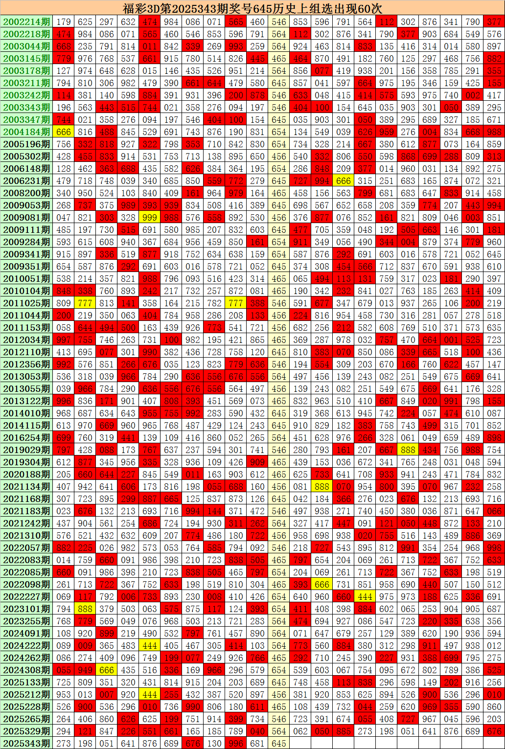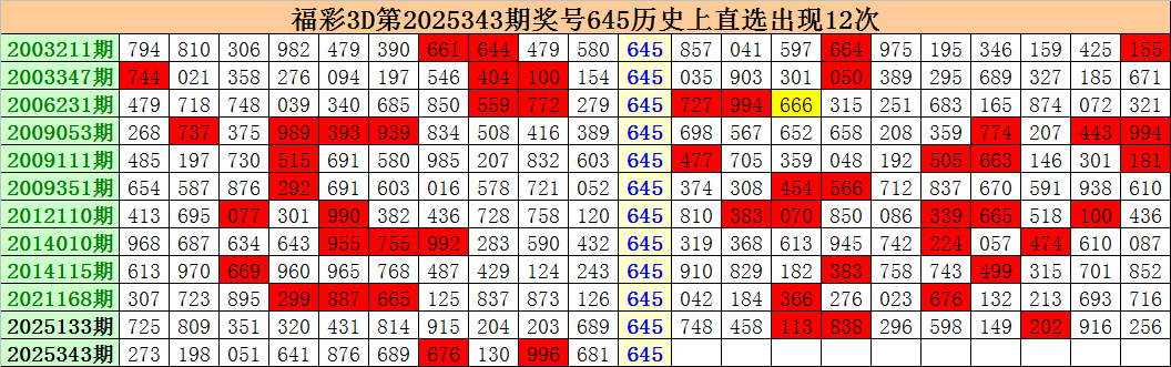 上期回顾:福彩3D第2025343期开出奖号645。