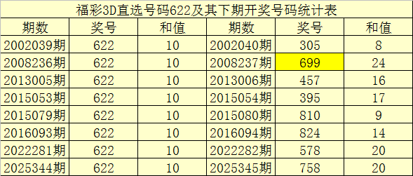 二、组选分析:历史上组选号码622开出了21次,其下期奖号分别为:305-953-787-925-427-699-905-457-107-395-810-824-493-143-719-564-578-047-526-551,其开出期数和下期奖号统计为: