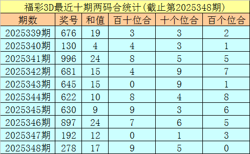开奖回顾:第2025348期福彩3D奖号为278。奖号形态为组六,大小比为2:1,和值为17,奇偶比为1:2,012路比为0:1:2,跨度为6。