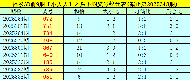 一、上期回顾:福彩3D第2025348期奖号为:278,奖号类型开出组六,大小比为2:1,奇偶比为1:2,和值为17,跨度为6,012路比为0:1:2。