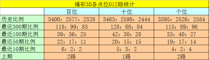 十位分析:该位最近10期开出了5个0路号码、3个1路号码、2个2路号码,0路号码热出,2路号码走冷。本期排除1路号码,参考号码:3。
