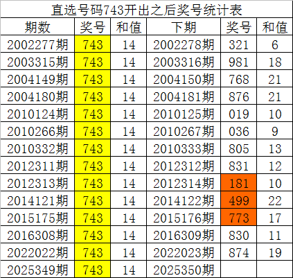 从以上统计可以看出,直选号码743出现之后,其下期奖号:1.下期奇数号码出现概率100%;