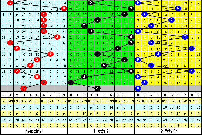 个位分析:最近7期个位分别开出奖号:8、3、0、2、8、0、1,个位振幅为8个点位,本期预计个位号码走小,参考号码0。