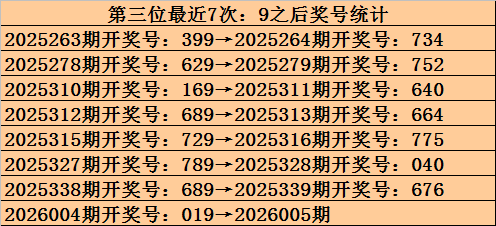 第三位冷码判断:上期开出奖号9,遗漏值为16期,目前该位最冷号码为4,遗漏值为26期,本期继续排除。