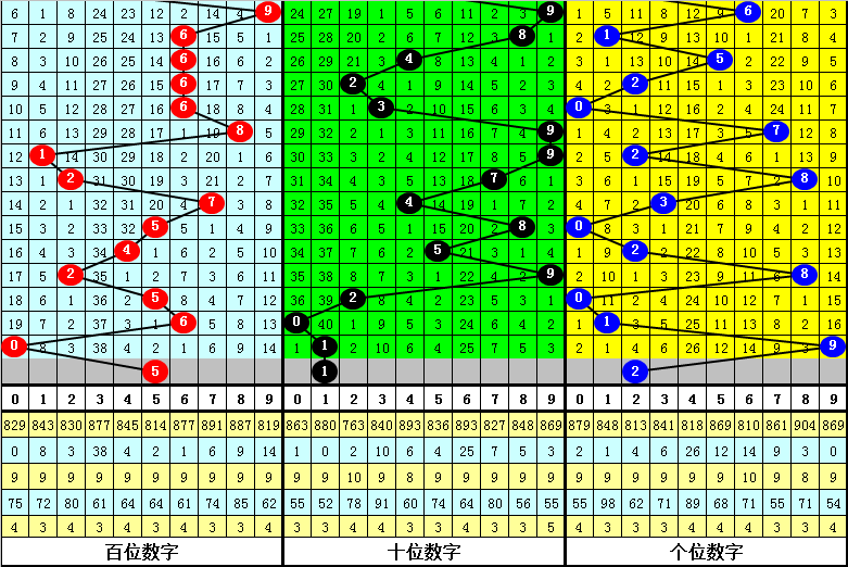 百位分析:最近50期表现较热的号码有:6出现13次,1出现9次,0、2出现5次;表现较冷的号码有:3出现1次,9出现2次,4出现3次。出号奇偶比为20:30,012路比为21:16:13。本期该位绝杀两码0、1,参考号码3、5、6,精选一码5。