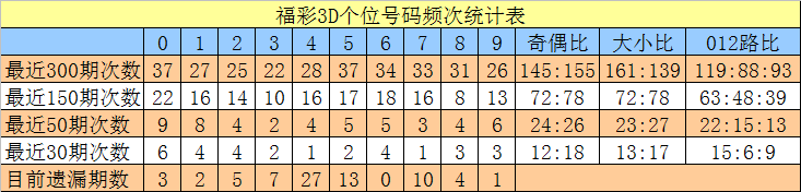 十位分析:前50期出号频次较高的号码为:4、6、8、9开出7次;出号频次较低的号码为:0、1开出2次,3开出3次。该位号码大小比为31:19,012路比为19:15:16。本期该位排除两码0、3,注意号码1、5、9,精选一码5。