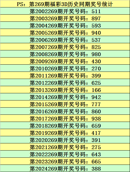 庄德第2025269期福彩3D推荐: