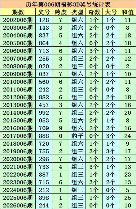 开奖回顾:福彩3D第2026006期奖号:244。