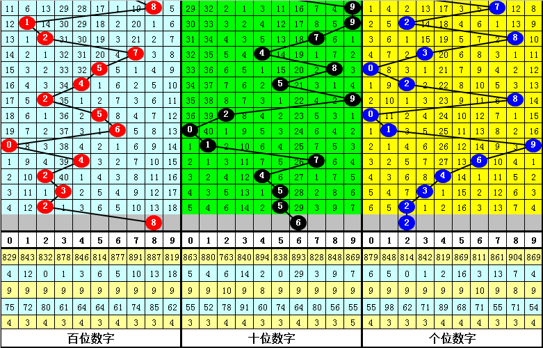 跨度分析:最近周五跨度出现范围在1-6区间,跨度比较集中,上周五跨度为5,跨度上升了3个点位,本期看好跨度上升,参考跨度6。