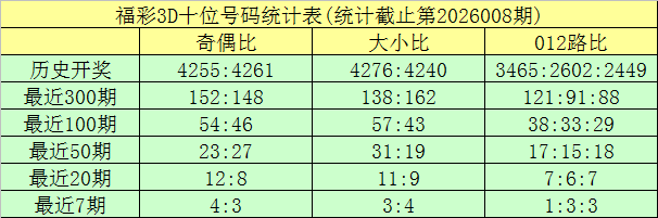 开奖回顾:福彩3D第2026008期奖号为:252。奖号形态开出组三,奇偶比开出1:2,012路比为0:0:3,大小比为1:2。