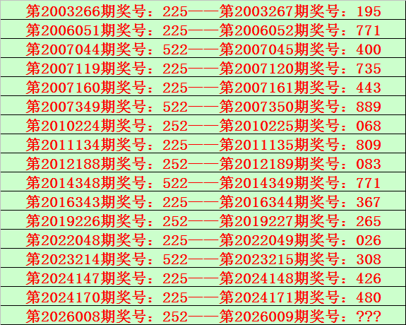 福彩3D第2026009期开奖日期:2026年1月9日,历史上第009期已开出了24次奖号,历年同期号码分别为:155、908、087、707、349、504、030、047、109、176、166、921、432、730、353、202、813、746、574、626、601、783、265、416。