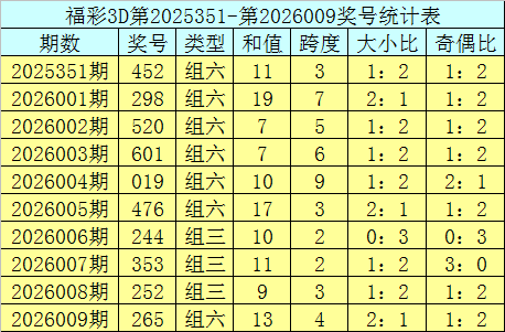 上期回顾:福利彩票3D第2026009期奖号为265。